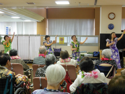 久しぶりの訪問です。敬老の日に因んだ催し物ということで、ご家族の参加も多かったように感じました。 施設の方々の入居されている方々へのご配慮に心暖まり、ほっこりした気分で帰らせて頂きました。マハロ~